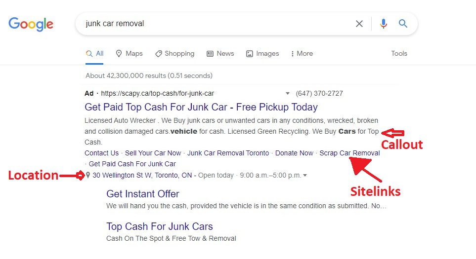 Junk Car services are a great way to reach out to potential customers. There are several junk car terms that may be classified into a general junk car service ad group, then there's geo-modifiers on the junk car terminology. These ad groups would be very city or state specific. They would be comparable to general auto wrecker, but with a city